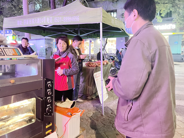魏述斌位于山东省立医院附近的蜜薯摊位