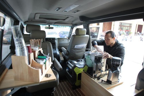 刘梧桐今年38岁,是这辆咖啡车的主人。2003年,刘梧桐金融学专业毕业后,进入银行从事会计工作,慢慢从基层做到了社区银行负责人,但高强度的工作和社交压力让他倍感焦虑。经过深思熟虑,他瞒着家人辞去了工作,用积攒的积蓄做投资,跟人合伙开了酒吧,做调酒师。今年1月,刘梧桐遇到了同样向往自由生活的女友于路静敏,两个人一拍即合,决定一起做点什么,去找寻他们想要的生活状态。刘梧桐在网上看到“流动咖啡车”的概念,觉得这种生活方式正是他们想要的,于是开始筹备起来。买了二手面包车,精心布置咖啡车内饰等,直到今年7月8日,“路上咖啡”开始出现在街头和景区。