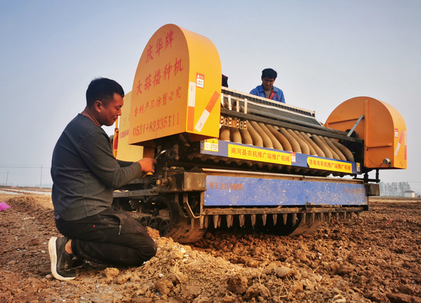 这两天,济南市商河县白桥镇迎来了大蒜抢种期