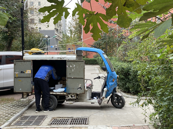 话音刚落,陈志强的手机响了,下午的货已经到了。下午的快递送起来比较麻烦——小区内的快递柜基本都满了。陈志强需要挨个打电话确定上门配送的时间。“平时还好,赶上‘双十一’,有的顾客一个人便能买一大堆快递,而且都是大件。”有个客户不在家,让他放在快递柜。他解释,“快递柜早就满了。”于是对方要求晚上七点左右送货上门,陈志强把这个快递单独放在车厢一侧,那里已经摆放了许多同样情况的快递包裹。