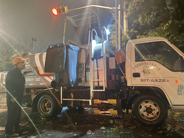 凌晨4点30分,济南经六路上分外安静。52岁的蒋士林已经工作了一个多小时,他是济南新城清洁服务有限公司的一名员工,从事清洁行业已有9年时间。他每天3点起床,开车来到自己所负责的街道,将垃圾桶里的垃圾倾倒进保洁车中,再送到垃圾处理站。