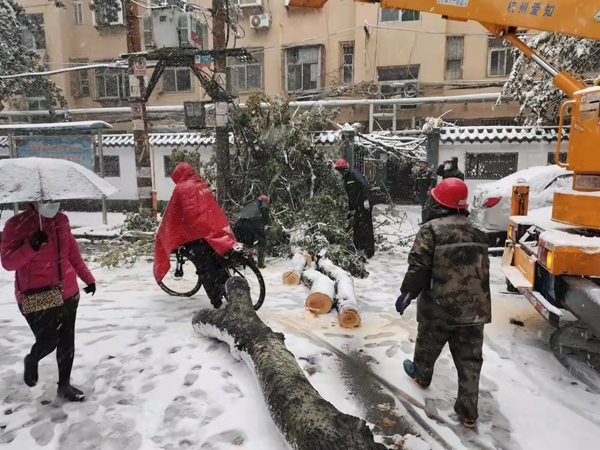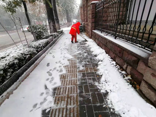 截至11月7日17时,全市城管系统共出动一线清雪人员2万余人,洒水车、撒布机、滚刷车等大型清雪车辆5200余车次,喷洒、干撒融雪剂1800余吨,铺设防滑毡2万余米,清理收集落叶7000余立方,全力保障雪后道路的安全通畅,发动市民群众50余万人,落实“门前五包”责任制,调动临街商户、企业单位力量,自扫门前雪,目前路畅人安。