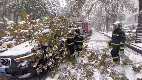 11月7日11时56分,位于济南市历下区泉城路恒隆广场附近路边树干因枝叶积雪过多,导致树干断裂,压在正在等待红绿灯的车辆上。接警后,济南市消防救援支队指挥中心立即调派泉城广场消防救援站1车7人赶赴现场。