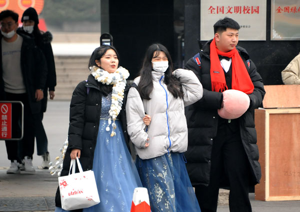 “视唱感觉怎么样?”“你声乐唱的什么?”“考场里面冷不冷?”……两位考生向刚刚考完试的小许请教考试经验。这两位考生的考试时间分别在下午和晚上,但她们一早便陪上午考试的小伙伴来到考点,顺便提前了解一些考试情况。小许安慰两位考生,考场的老师都很好,只要把自己的曲目准备好,别紧张就行。小许说,自己准备的声乐曲目是《锦瑟》,“希望自己能考到青岛或者其他沿海城市的学校。”