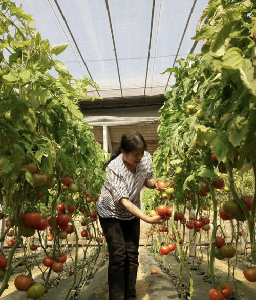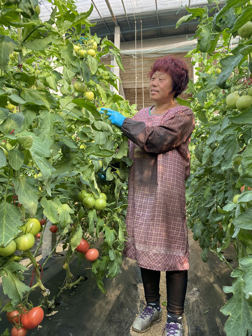 采访过程中,棚里恰巧进来一位本村的大爷,他一次性买了两百元的礼盒装西红柿来赠予亲友。此外,这个普通村庄种植的西红柿已经走向更远的地方。许英秀说,现在大棚的西红柿基本是自销,“除了供应本地,也销往东北,出口俄罗斯。有专门的货车来拉货”。如今,许英秀和丈夫每天早早来到大棚开始忙活,他们的辛勤劳动也得到了令人欣慰的回报。随着西红柿产量的增高,种植户们的经济收入也稳步提高,日子也越过越红火。说到这里,许英秀的脸上露出了幸福的笑容。