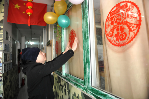 2月11日下午,记者再次来到青年旅社,辛红亮正在屋内忙活着擀饺子皮儿,住在旅社的张明和陈伟调饺子馅儿,其他人在旁边打下手。旅社里张灯结彩,年味十足——墙上挂着各色气球,玻璃上贴着大红窗花,门口的福字和春联烘托着节日的气氛。为了让留济异乡人感受到家的温暖,小年儿一过,辛红亮就开始着手布置旅社,和大家一起装扮房间准备过年。