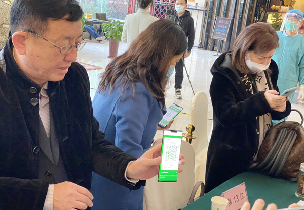 参会委员报到时首先需要出示“三表”“两码” 记者 王颂博 摄