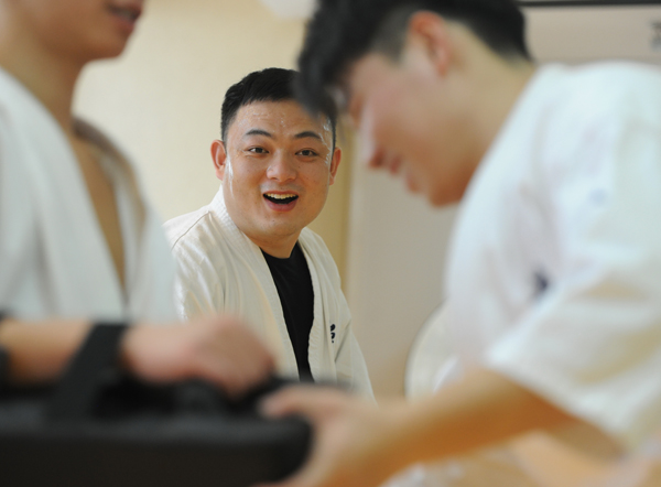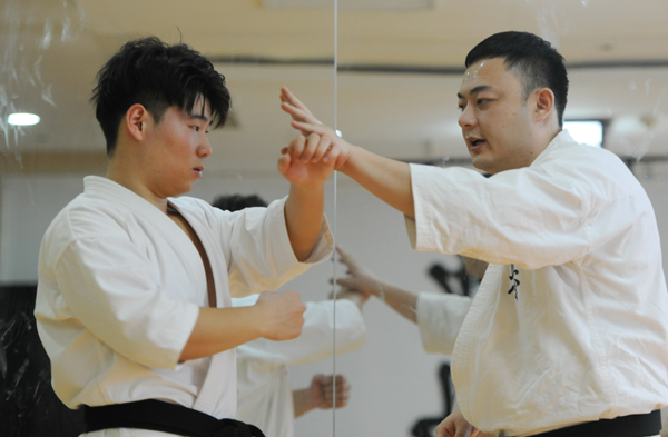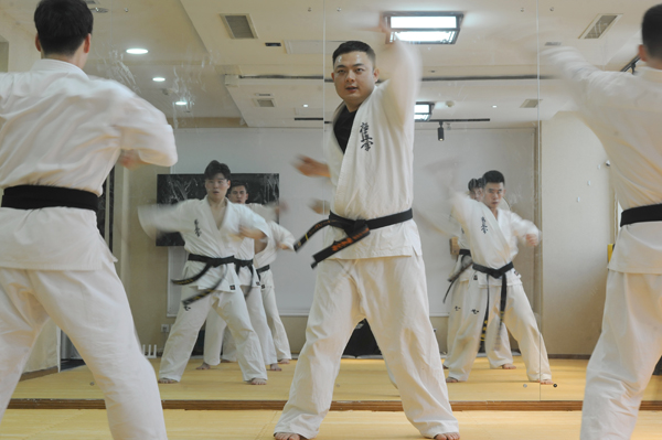 在济南和谐广场附近的一座写字楼的二楼,打开房屋大门,激烈的对抗训练,有序的敬礼,一声声呐喊,无不让人震撼……这是90后小伙董梁平的道馆。