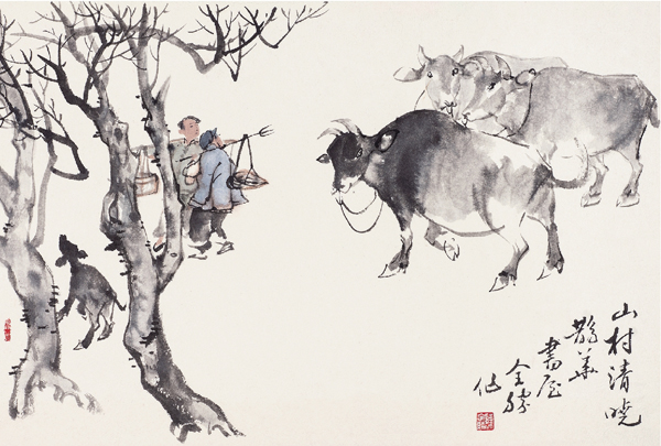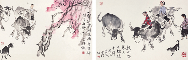 十二生肖中,牛是颇受历代画家喜爱的题材之一,耳熟能详的唐代韩滉《五牛图》、戴嵩《斗牛图》;南宋李迪《风雨牧归图》;明代张路《老子骑牛图》;清代杨晋《石谷骑牛图》、石涛《对牛弹琴图》……近代白石老人、潘天寿、李可染等以牛为题的作品也多为佳构,被世人称颂。他们笔下的牛不仅有动作和神态的描绘,有品性和精神的传达,更重要的还是他们赋予了牛人格化的魅力。