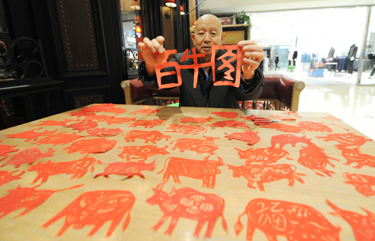 春节越来越近,年味也越来越浓。牛年将至,150余幅形态各异、惟妙惟肖的金牛剪纸,寓意福牛到家,令人叹为观止。这些作品出自一位老人之手,他就是70岁的徐健,从事剪纸已经长达50多年,是赫赫有名的“剪纸王”。徐健每年都会创作生肖图案的剪纸,这套金牛剪纸,花费了他将近一年的时间。 “多看、多学、多练,不断创新,这样才能创作出更多更好的作品。我年纪比较大了,希望这些作品可以在社区、景点进行展出,在感受牛年喜庆氛围的同时,将剪纸手艺推广传承下去。”徐健说道。 山东商报·速豹新闻网记者 赵天羿 摄