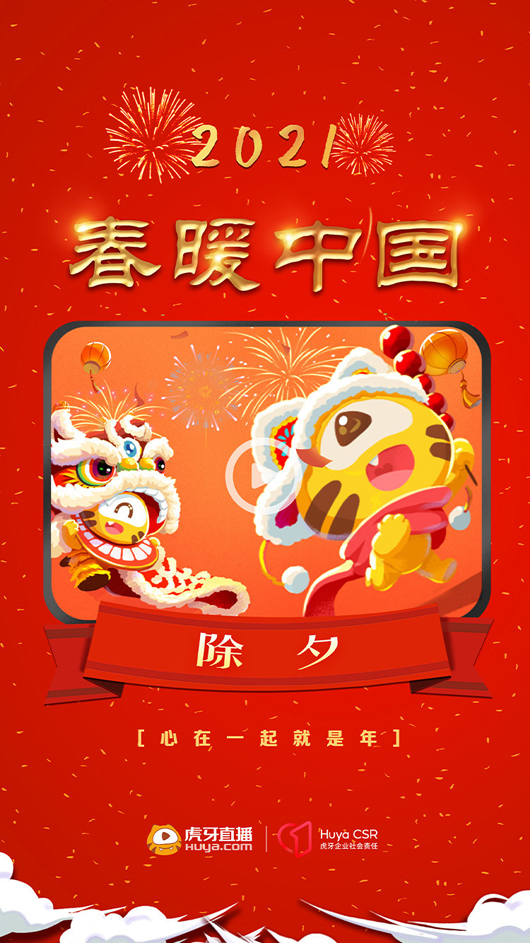 凭借丰富多彩的线上活动形式与内容,虎牙直播“春暖中国”春节线上专题活动将为“就地过年”坚守岗位的人们带来最浓厚的年味儿,传递企业与员工之间深厚的情意。即便身处远方,同样可以与家人、朋友“云”相聚,过大年。