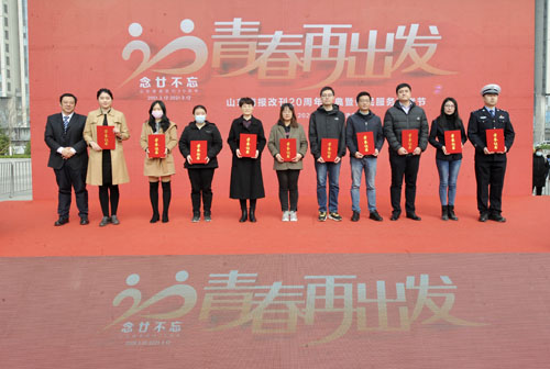 3月12日是山东商报由行业报改刊为都市生活类日报20周年的报庆日,全国275家媒体表达了对山东商报的祝贺。随着济南火车站北广场现场气氛愈来愈热烈,山东商报20周年便民服务读者节盛大开幕!
