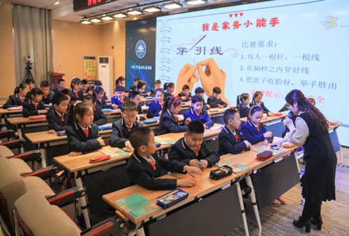 第一堂课是山大附中小学部胡天秀老师带来的《我的家庭贡献与责任》的展示课,她以“自理小能手和家务小能手”作为导入,从学生生活实际出发,让学生懂得自己的事情自己做。她用家长视频、课堂小任务等轻松的方式,打开学生思维,让学生明白承担家务不能仅凭一时兴起,需要有负责任的精神;引导学生召开家庭会议,解决“家庭任务”,增进家庭成员的情感联系。