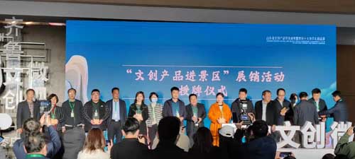 活动现场,山东省文化和旅游商品大赛、公共文化机构大赛、非遗+旅游文创大赛、文创礼品大赛、精品旅游文创大赛等优秀作品创作者与落地转化单位进行签约。值得一提的是,“文创产品进景区”展销活动同期正式启动,将进一步拉动文化旅游消费,促进文创产品落地销售。现场,山东省文旅厅为泰山景区、天下第一泉风景区、黄河口生态旅游区、蓬莱阁旅游区、青州古城旅游区、华夏城旅游景区、沂蒙山旅游区龟蒙景区、萤火虫水洞·地下大峡谷旅游区等8家第一批“文创产品进景区”单位授牌。