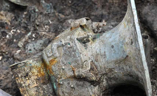 据了解,新发现的六个“祭祀坑”平面均为长方形,规模在3.5至19平方米之间。目前,3、4、5、6号坑内已发掘至器物层,7号和8号坑正在发掘坑内填土,现已出土金面具残片、鸟型金饰片、金箔、眼部有彩绘铜头像、巨青铜面具、青铜神树、象牙、精美牙雕残件、玉琮、玉石器等重要文物500余件。