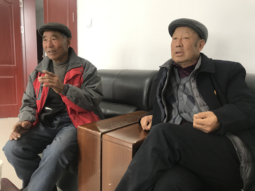 年近80岁的厉月钦和徐根田向记者讲述厉家寨人的奋斗史