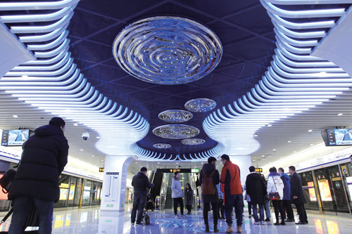 济南地铁3号线济南东站站台天花板融入泉水元素