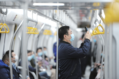 3月26日,济南地铁2号线正式运营,市民前来体验拍照留念