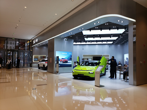 济南某商业广场内小鹏汽车门店吸引消费者驻足