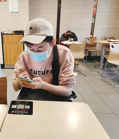 济南一市民在餐厅扫码点餐 记者 周里 实习生 郇志同 摄