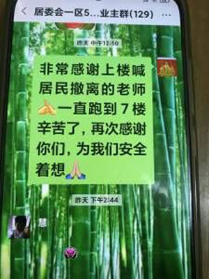 “大家好,不知道是谁上楼叫的邻居,才让我们一家人都跑了下来。很感谢她,想给她送一面锦旗,知情的邻居麻烦告知一下我,非常感谢。水火无情,很危险,所以我想替家里人表达谢意。”刘女士女儿得知此事后,就在小区微信群问询。小区微信群的居民也都想表达感谢,但都不认识那名女子。