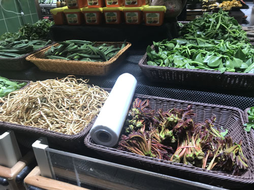 在济南一家大型连锁超市,和茄子、辣椒等平常蔬菜不同,香椿芽、春笋等早春时令蔬菜单独“组队”,放在篮子里。香椿芽的价格也是最高的,每斤29.9元。