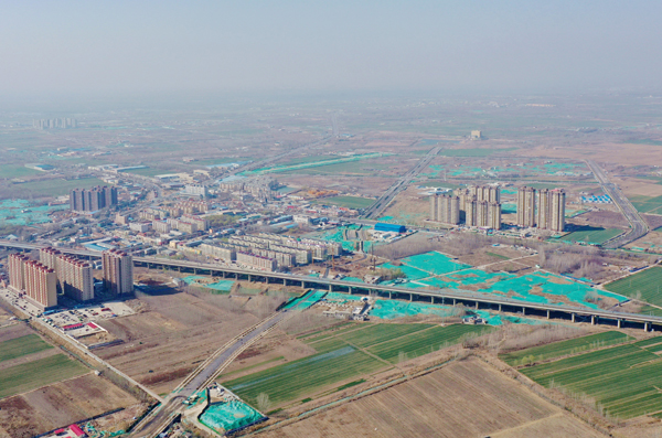 俯瞰崔寨立交桥,满眼尽是绿纱网,这里即将高楼林立
