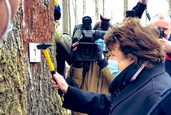 法国文化部长罗塞琳·巴切洛选定第一棵将用于修复巴黎圣母院尖顶的橡树