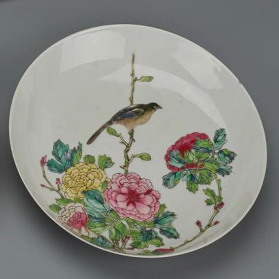 除了画作,博物馆的许多器物中也镌刻着古人对春的情思。孔子博物馆馆藏的一套清代粉彩花鸟盘运用多种不同花鸟的组合来展现春天。这套粉彩花鸟盘共有5件,外壁施胭脂红釉,盘内则装饰有花鸟纹。梅花、桃花、牡丹、荷花娇艳欲滴,喜鹊、仙鹤、杜鹃、锦鸡、凤鸟栖于枝头,动静相宜,鸟语花香。