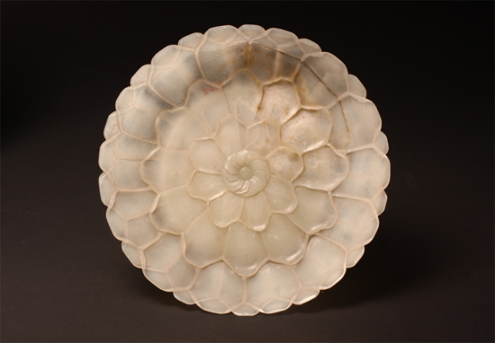 在山东博物馆的众多馆藏文物中,北宋青白釉菊花粉盒是很特殊的一件。它是一件花卉样式的粉底盒,由景德镇窑烧制。粉盒盖面微鼓,模印菊花瓣纹,盒身呈菊花瓣形,盒外部除底外均施釉,釉白种闪青,制作精致。可以想象拥有这个粉盒的小姑娘在化妆后前去踏春的美好景象,青春靓丽,生机勃勃。同样采用花形的文物还有山东博物馆馆藏的“痕都斯坦”玉盘,以浅凸,打凹等技法,将花、叶的形态刻画得淋漓尽致,充分体现了玉薄如蝉翼、圆润精细的特点。