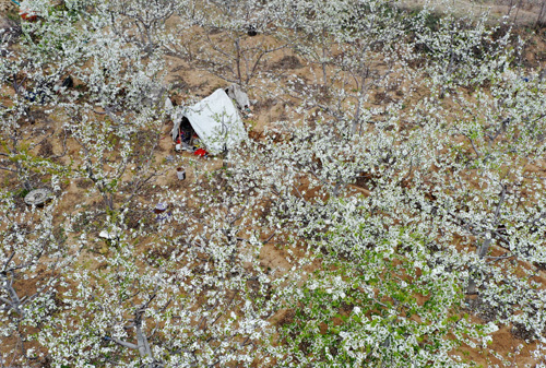 时下,长清五峰山樱桃谷里,还漫山遍野开放着雪白的樱桃花