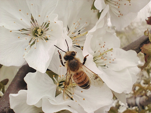 樱桃花下,蜂儿采蜜忙
