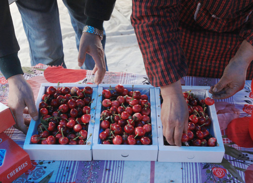 目前,进棚采摘樱桃的价格为120元一位