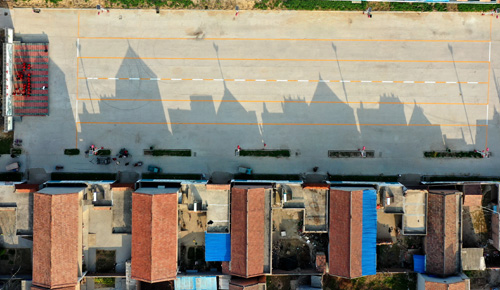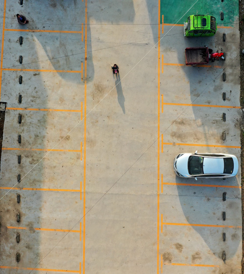 村里兴建了停车场,村里越来越现代化。