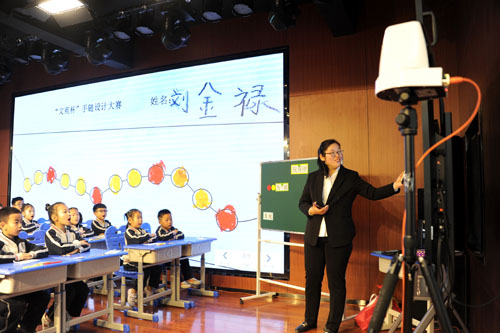记者采访时正赶上历城区东城片区小学数学联合教研活动,历城区虞山路小学前期通过网络平台,提前预约了历城区文苑小学张静老师,给一年级学生上一堂公开展示课。同时,也向东城片区所有的数学老师发出邀请,最终有80多名老师到场进行观摩学习。授课现场全程直播录课,无法到场的老师可以随时通过手机或电脑观看,课后也可以反复调取视频素材研磨。