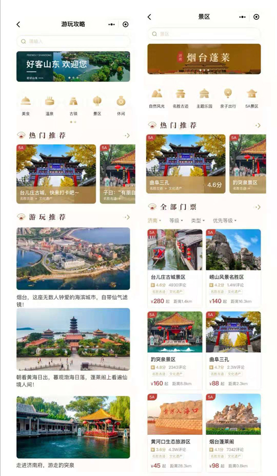 国内外游客智慧服务平台,以游客“衣食住行游购娱”需求为先导,向游客提供游前、游中、游后全场景的数字化、智慧化服务矩阵,满足文旅资讯精准推送、旅游产品个性化推荐、交通出行便捷服务、AI助手智能行程规划、旅游互动导览等全流程游客需求,实现“一机在手,畅游山东”。