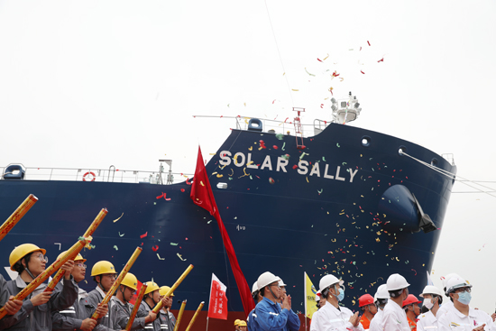 商报靖江消息 4月23日,山东海洋集团权属企业山东海运股份有限公司8艘5万载重吨IMOⅡ型油化品船项目首艘船舶SOLAR SALLY轮顺利建成交付,即将启程为荷兰壳牌集团在全球提供成品油运输服务。