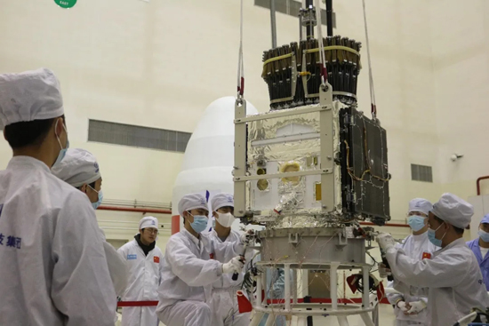 4月26日,记者从山东产研院获悉,根据齐鲁卫星星座建设规划,齐鲁卫星星座中的“齐鲁一号”和“齐鲁四号”将于4月27日在太原卫星发射中心发射,这将是齐鲁卫星星座首次发射,未来三到五年内,齐鲁星座将发展到20颗卫星。目前,高分辨率遥感市场刚刚起步,提前布局的齐鲁星座抢抓这一难得机遇,率先升空组网运行,将全面服务于山东高质量发展。图为工作人员正在对卫星进行检查。