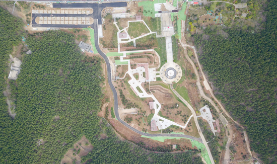 空中俯瞰济南佛慧山景区开元寺入口生态景观提升工程