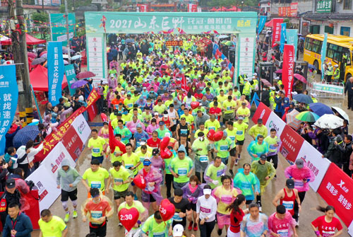 5月16日早8点,2021山东巨野花冠·鲁雅香山地半程马拉松在巨野县核桃园镇鸣枪开赛