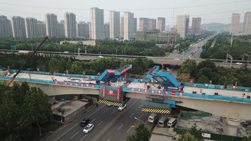 济莱高铁港沟站特大桥跨世纪大道连续梁19日夜间顺利合龙