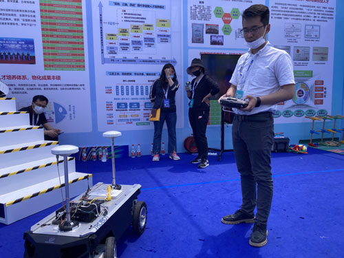 “这是我们公司研发的室外巡检机器人底盘,也就是机器人负责移动的部分。”在山东商业职业技术学院的展示现场,请到了学校12级机电一体化专业的杰出校友董大鹏,其开发的机器人项目曾获全国“互联网+”大学生创新创业大赛金奖。“毕业后我借助这一项目创办了极创机器人,现有山东和深圳两家公司,已经完成了两轮千万级的融资。”