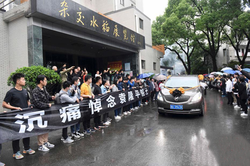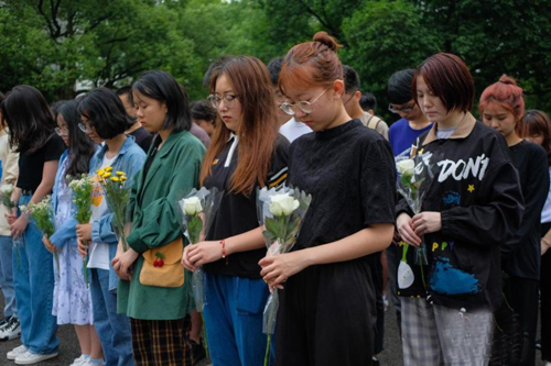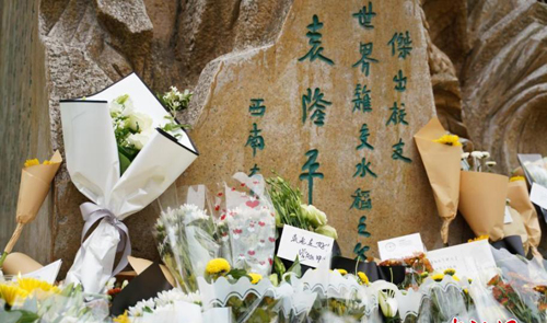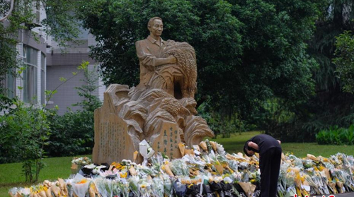 袁隆平母校重庆西南大学的师生自发来到学校袁隆平雕像前,献上鲜花,表达哀思。