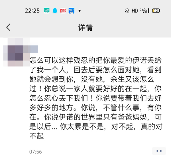 昨天清早,刘银发布了一条朋友圈,“怎么可以这样残忍,把你最爱的孩子丢给我一个人,回去要怎么面对她,看到她就会想起你,没有她,余生又该怎样过。你怎么忍心丢下我们……”网上的新闻铺天盖地,但刘银没有心思翻看,她说:“现在梁晶不在了,离世时的具体情况,至今我还不知道。孩子还那么小,我要照顾她,这以后怎么办。”刘银说,她心里乱得很,一直也没有得到明确的说法。