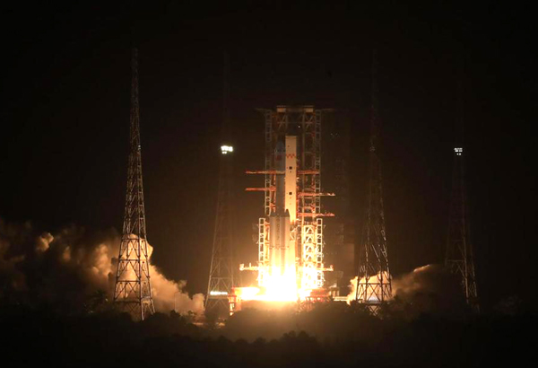 发射天舟二号货运飞船的长征七号遥三运载火箭点火起飞
