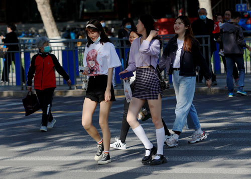 昨日,省城天气晴朗气温较高,出行的市民大多换上了夏装 记者 周里 实习生 郇志同 摄
