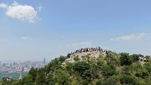 不少游客登顶济南千佛山远眺泉城