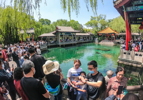 济南趵突泉边聚满了游客
