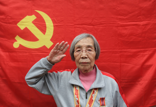 值此建党100周年到来之际,老人再次向祖国敬礼