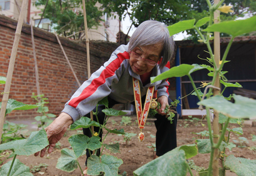 韩老很喜欢田园生活,在自家的院子里种了很多菜
